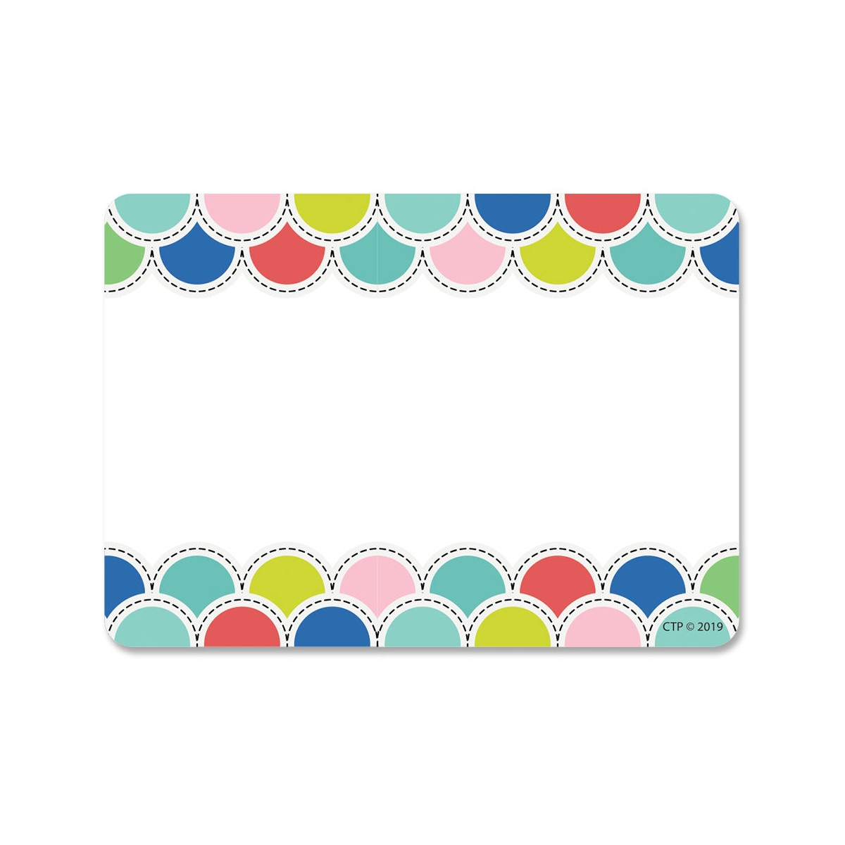 A fun twist on simple scallops, these Poppin' Scallops Labels feature a fresh color palette and black dashed edging. Adhesive labels are great to use at school, home, and the office! Use them as name tags for first day of school, field trips, open house, back-to-school night, parent visitations, class parties, and more! These labels are also perfect for organizing around the classroom or in an office. Use them for labeling supply bins, storage containers, book libraries, binders and folders, drawers, and more