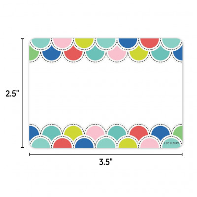 A fun twist on simple scallops, these Poppin' Scallops Labels feature a fresh color palette and black dashed edging. Adhesive labels are great to use at school, home, and the office! Use them as name tags for first day of school, field trips, open house, back-to-school night, parent visitations, class parties, and more! These labels are also perfect for organizing around the classroom or in an office. Use them for labeling supply bins, storage containers, book libraries, binders and folders, drawers, and more.
