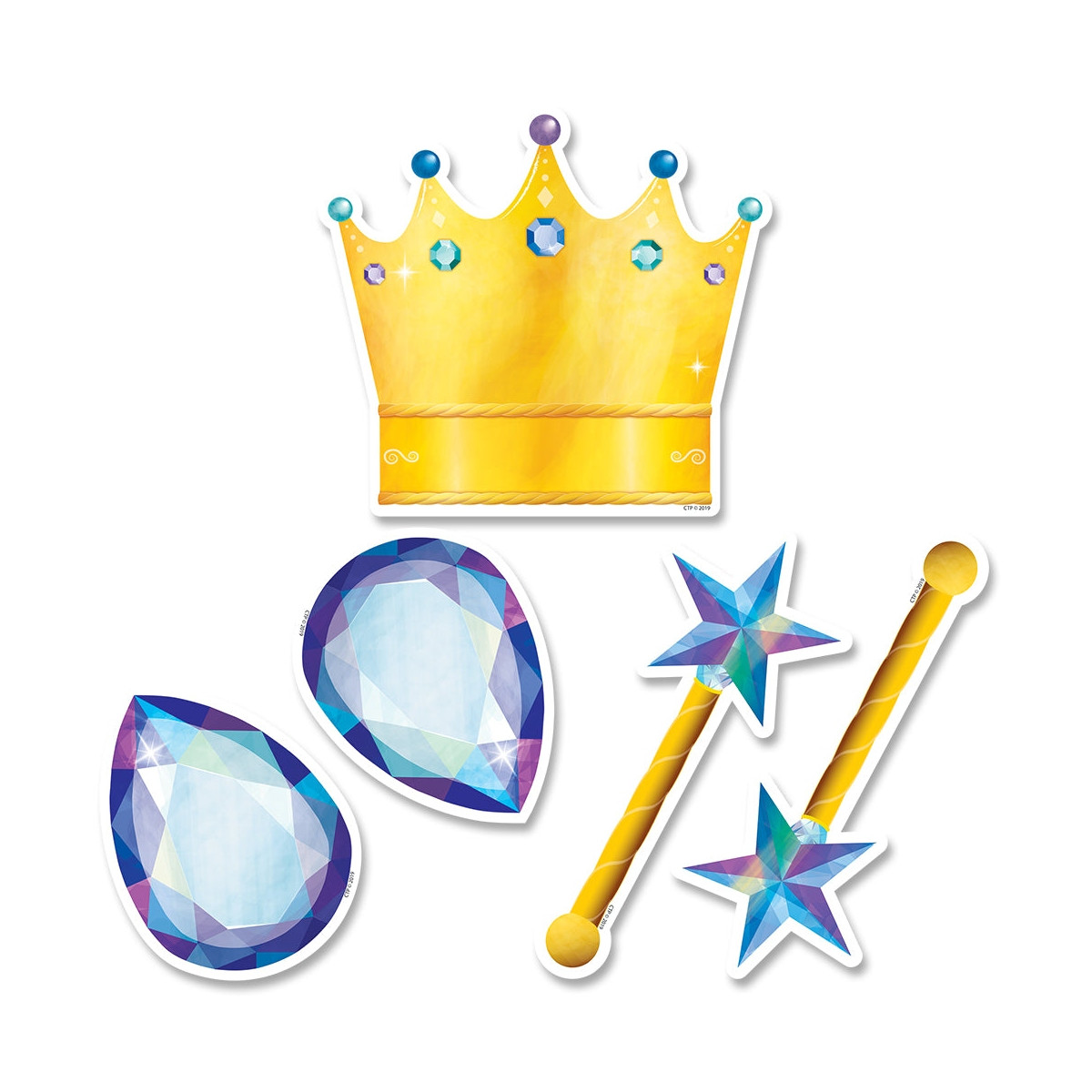 Bring a bit of royalty to your classroom with these Crowns and Jewels 6" Designer Cut-Outs! Set includes a jewel-studded crown, magical wishing wands, and sparkling gems. Use these colorful cut-outs as labels for storage bins, desk tags, accents on bulletin boards, writing prompts, learning center activities, and more!