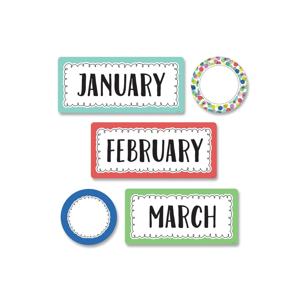 Give your monthly calendar display a pop of color with these Color Pop Months of the Year. These month headlines are great for use with a calendar chart during a daily calendar lesson or circle time. Included in the set are 12 month headlines and 7 bonus Color Pop circle cut-out accents.