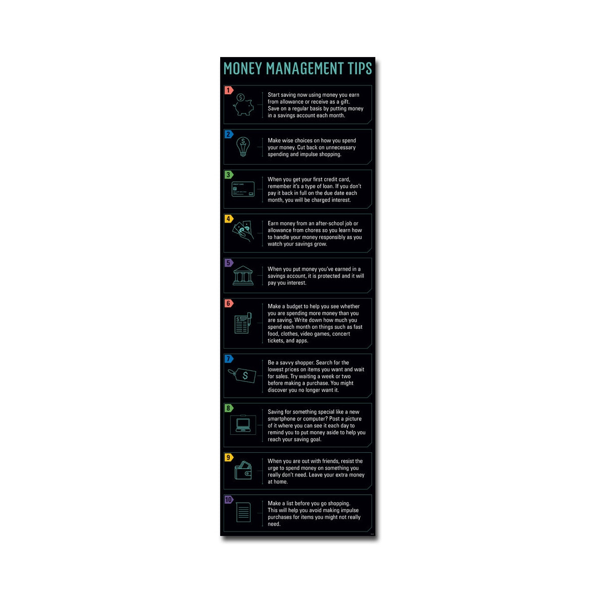 This Financial Fundamentals Giant Banner encourages students to learn and think about money management tips. It helps students make personal, real-world connections with personal finance and supports critical thinking.