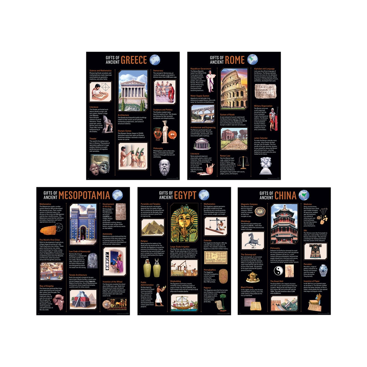 Engage and inspire students with this Ancient Civilizations 5-Poster Set. The 5 posters in this set cover core content: