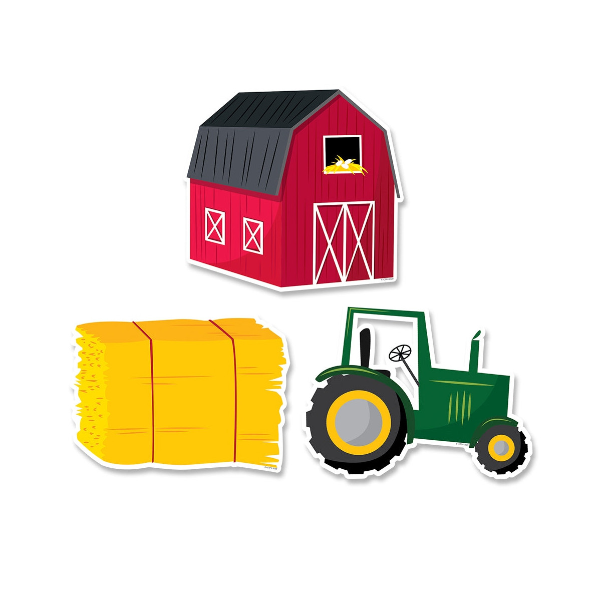 Take students on a trip to the farm with Farm Friends Farm Fun 6" Designer Cut-Outs. Pack includes a tractor, haystack, and red barn. Great for early childhood classrooms and centers. Farm Friends cut-outs are perfect for use in a variety of classroom displays and themes, including plants, food, gardening, animals, machines, and life on the farm. They also make perfect decorations for a child's party.