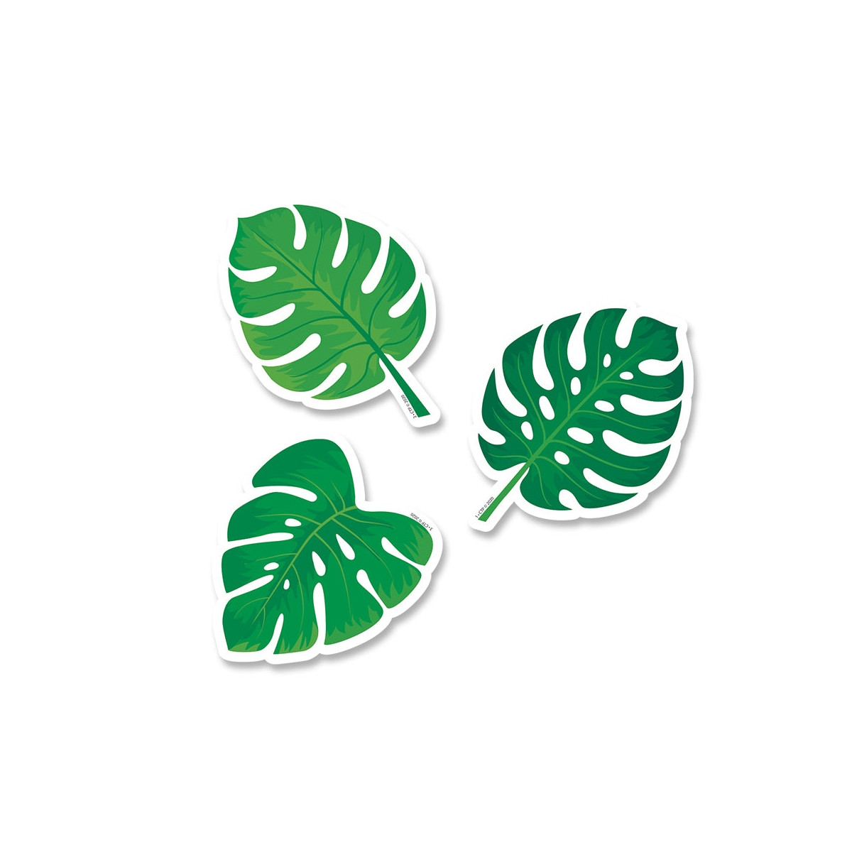 Palm Paradise Monstera Leaves 3" Designer Cut-Outs are perfect for accenting a variety of classroom displays, bulletin boards, and student projects. They make great labels on cubbies, student folders, supply bins, binders, and more! The colorful leaf design makes them great for creating lush tropical displays. String them together on a ribbon to create a fun pennant decoration. Great for bulletin boards about nature, plants, the jungle, spring, and summer.