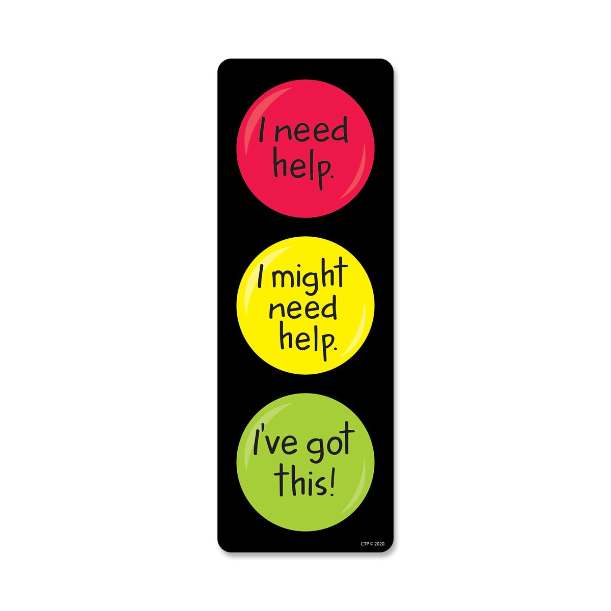 Help students communicate their needs and learning status with this personal-sized Learning Stoplight Desktop Clip Chart. Students can use a large paper clip or clothes pin (sold separately) to mark their progress throughout the lesson or school day. This is a simple and effective classroom management tool teachers can use to visually monitor and respond to students to improve their learning and behavior. This stoplight will benefit students who are quieter in class or who are afraid to raise their hand and ask questions. The bookmark size is convenient for use at a student's desk.