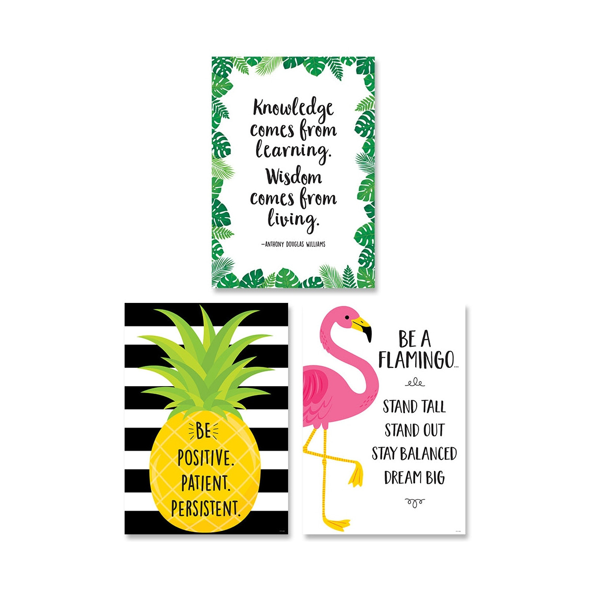 The motivational messages and colorful designs on the posters in this Palm Paradise Inspire U Poster 3-Pack will brighten any space. Great for display in a school, church, dormitory, or anywhere a little inspiration is needed. Poster designs feature palm leaves, monstera leaves, a flamingo, and a pineapple.