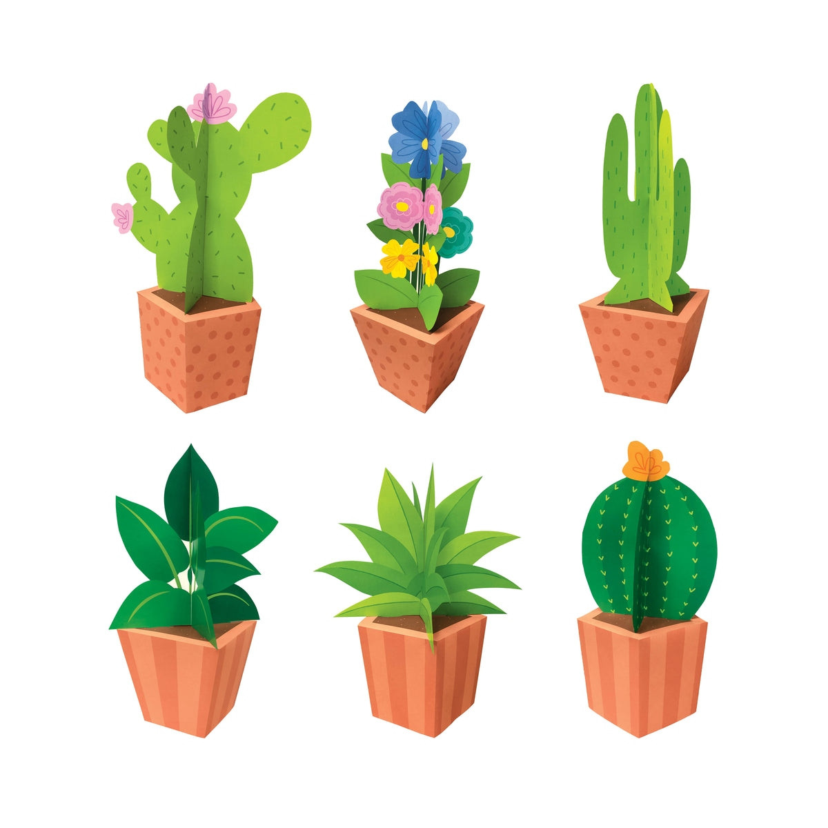 Bulletin boards and classroom displays will come alive with this 3D Pop! Potted Plants Bulletin Board. The realistic-looking 3-D potted plants in this set provide all the calming benefits of the natural world with none of the maintenance! Perfect for creating an aesthetically pleasing plant decor theme in the classroom.
