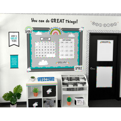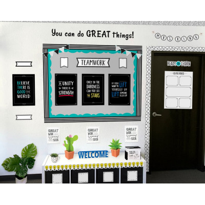 Smart and simple, this Core Decor Black Stripes EZ Border features black and white contrasting, horizontal stripes. Use it alone to create a classic look or layer it with another border for a unique designer look. Perfect for use on bulletin boards in a wide variety of classroom, office, church, and school settings. These new EZ borders come in smaller strips, which are easier to manage and store. Each package comes with enough borders to complete 2 full bulletin boards.