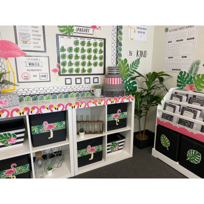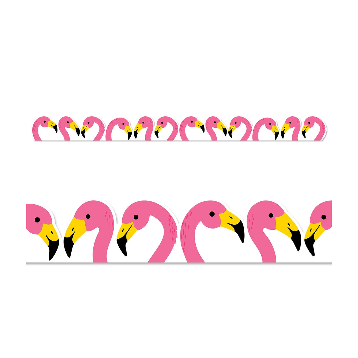 Bring some fun to any bulletin board with this bright Palm Paradise Flamingos EZ Border. These new EZ borders come in smaller strips, which are easier to manage and store. Each package comes with enough borders to complete 2 full bulletin boards.