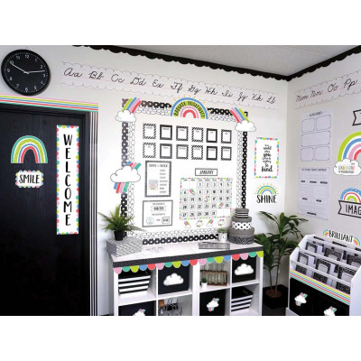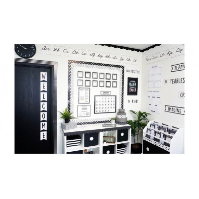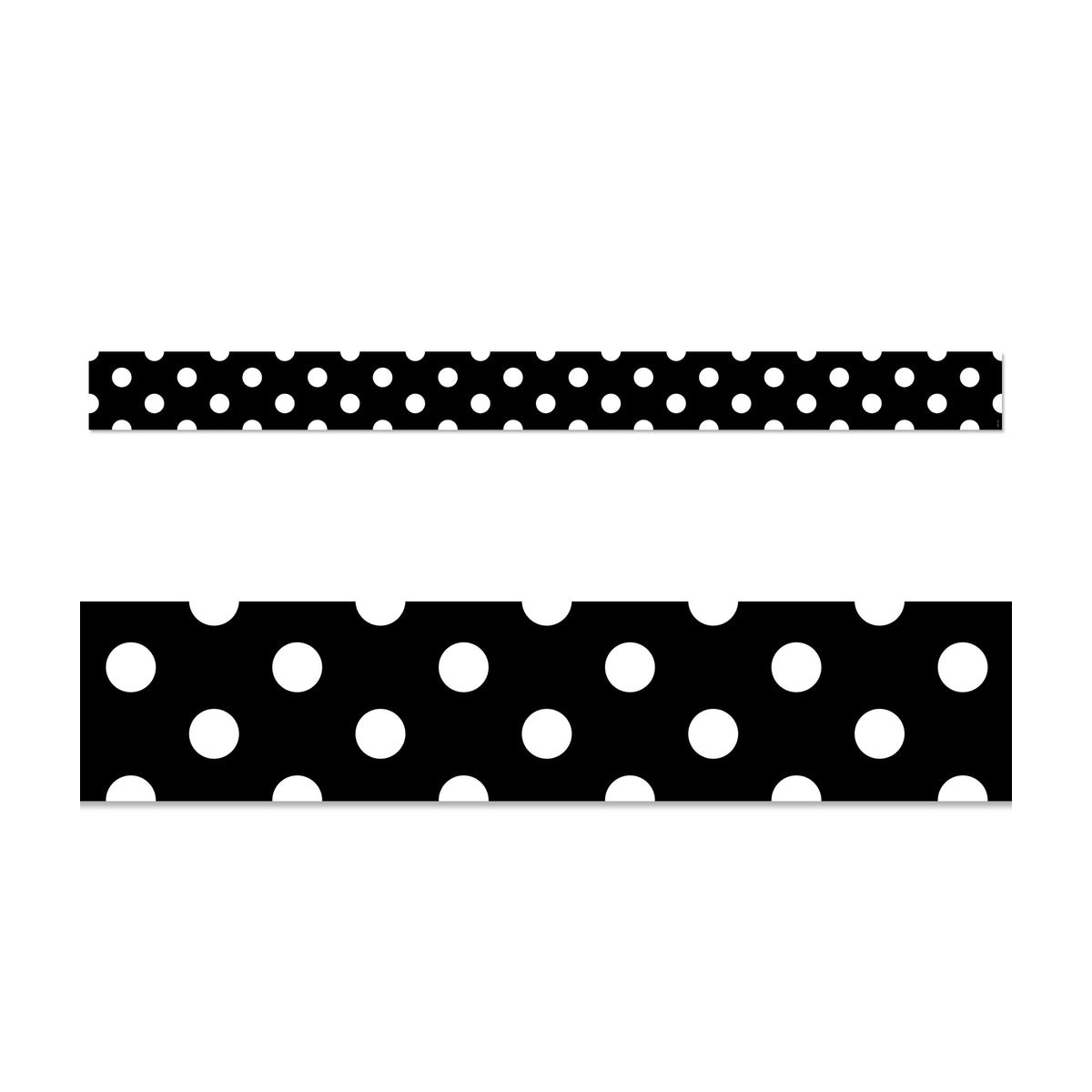 Classic dots in classic colors, this Core Decor Polka Dots on Black EZ Border is perfect for any bulletin board. The neutral colors and simple style make it perfect to trim bulletin boards in a wide variety of classroom, office, church, and school settings. This bulletin board EZ border can be used alone to create a basic look or layered with another border for a more designer look. These new EZ borders come in smaller strips, which are easier to manage and store. Each package comes with enough borders to complete 2 full bulletin boards.