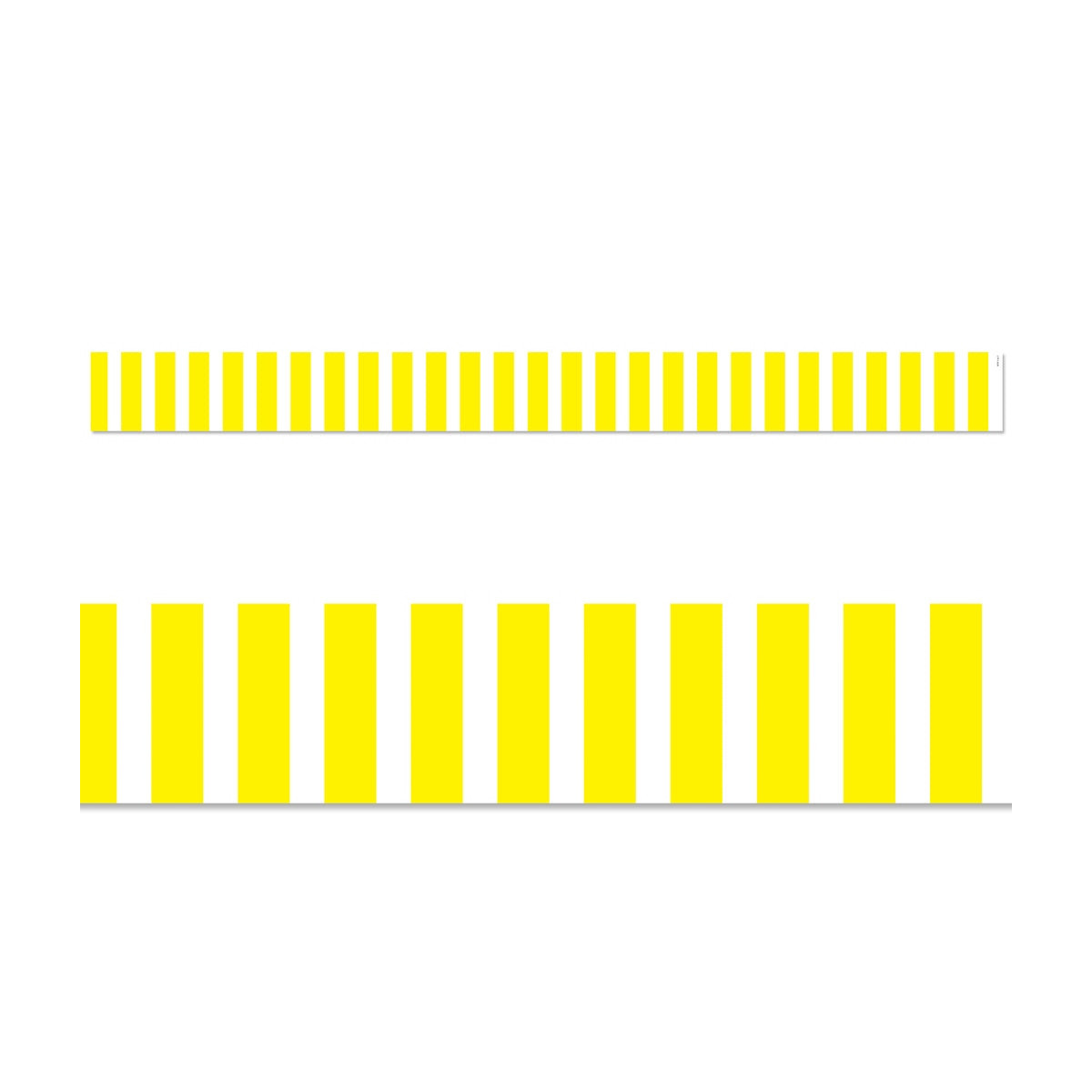 Smart and simple, this Core Decor Yellow Bold Stripes EZ Border features yellow and white contrasting, horizontal stripes. Use it alone to create a classic look or layer it with another border for a unique designer look. Perfect for use on bulletin boards in a wide variety of classroom, office, church, and school settings. These new EZ borders come in smaller strips, which are easier to manage and store. Each package comes with enough borders to complete 2 full bulletin boards.