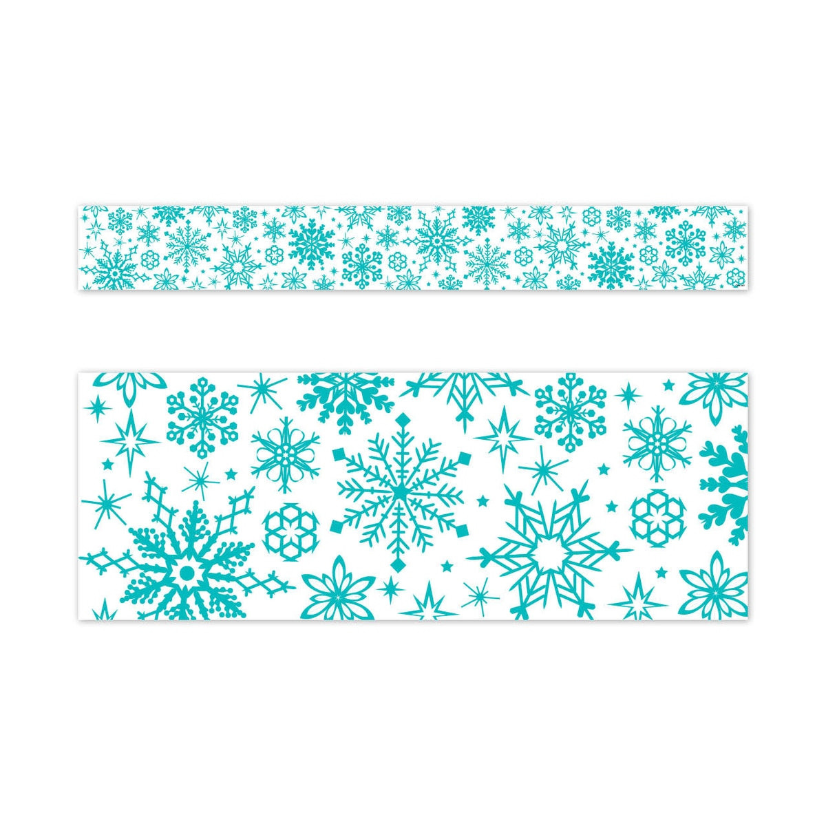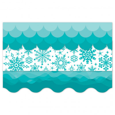 Dress up bulletin boards, rooms, hallways, and common areas with this Snowflakes EZ border. This versatile border is perfect for holiday and seasonal decorating. These new EZ borders come in smaller strips, which are easier to manage and store. Each package comes with enough borders to complete 2 full bulletin boards.