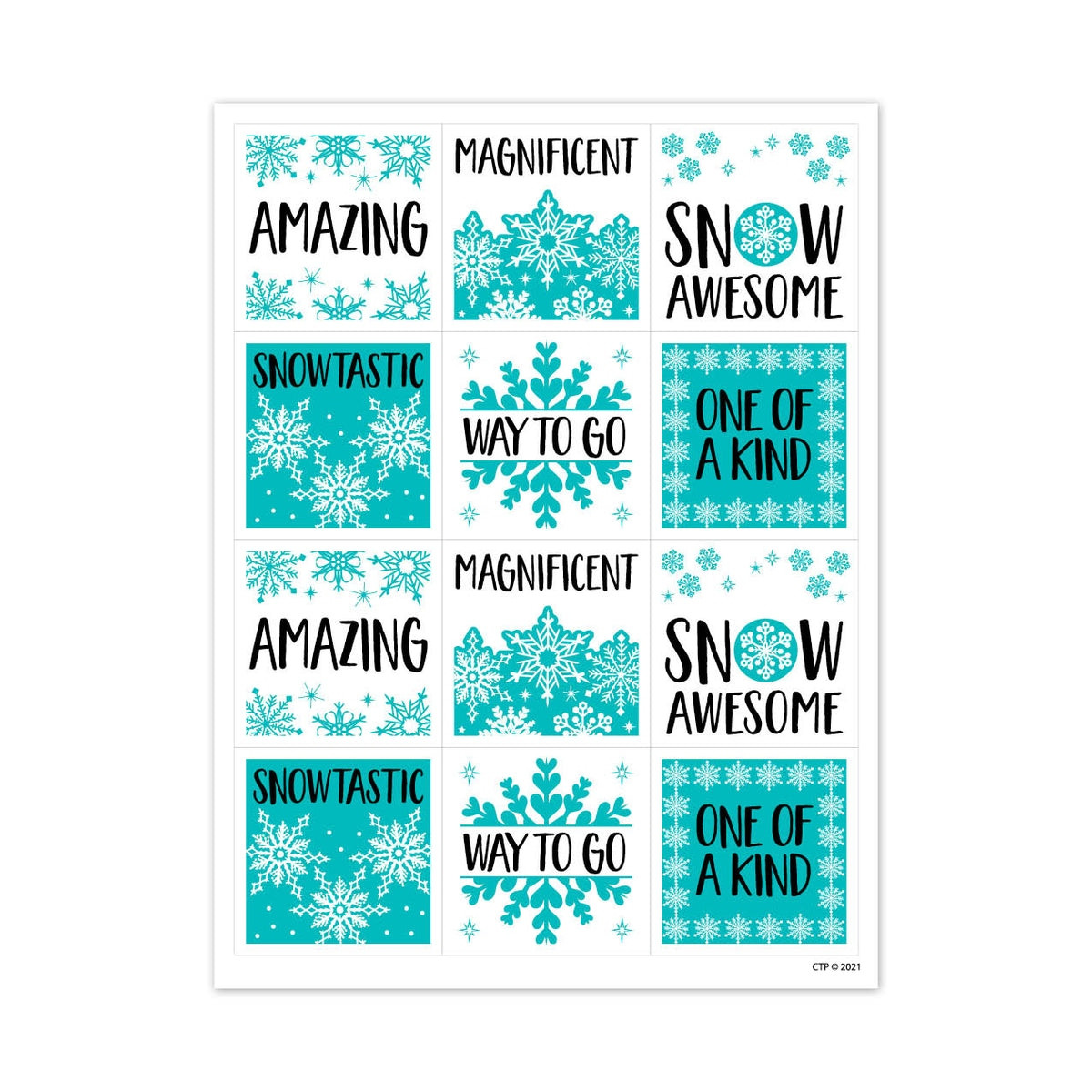 Reward students for outstanding work, great effort, good behavior, and a positive attitude with these spectacular Snowflakes Reward Stickers. The positive words and wintery designs will brighten any student's day. Approximately 1.5" x 1.5"