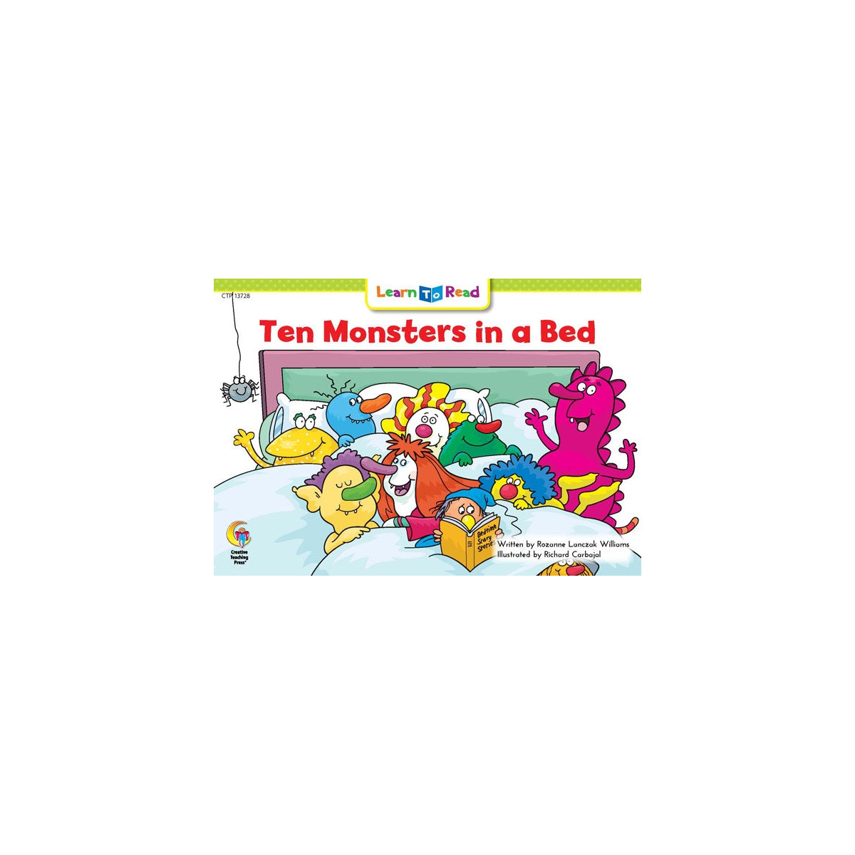 10 little monsters are sharing a bed. But when they all keep rolling out, how many will be left?