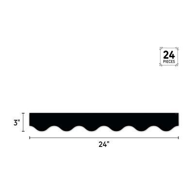 This Black Wavy EZ Border is a perfect complement to just about any other color or design. Use the border by itself or layer it with another border for a unique look. Perfect for use on bulletin boards in a wide variety of classroom, office, and school settings. Each package comes with enough borders to complete 2 full bulletin boards.