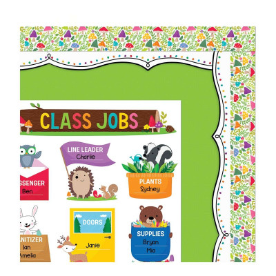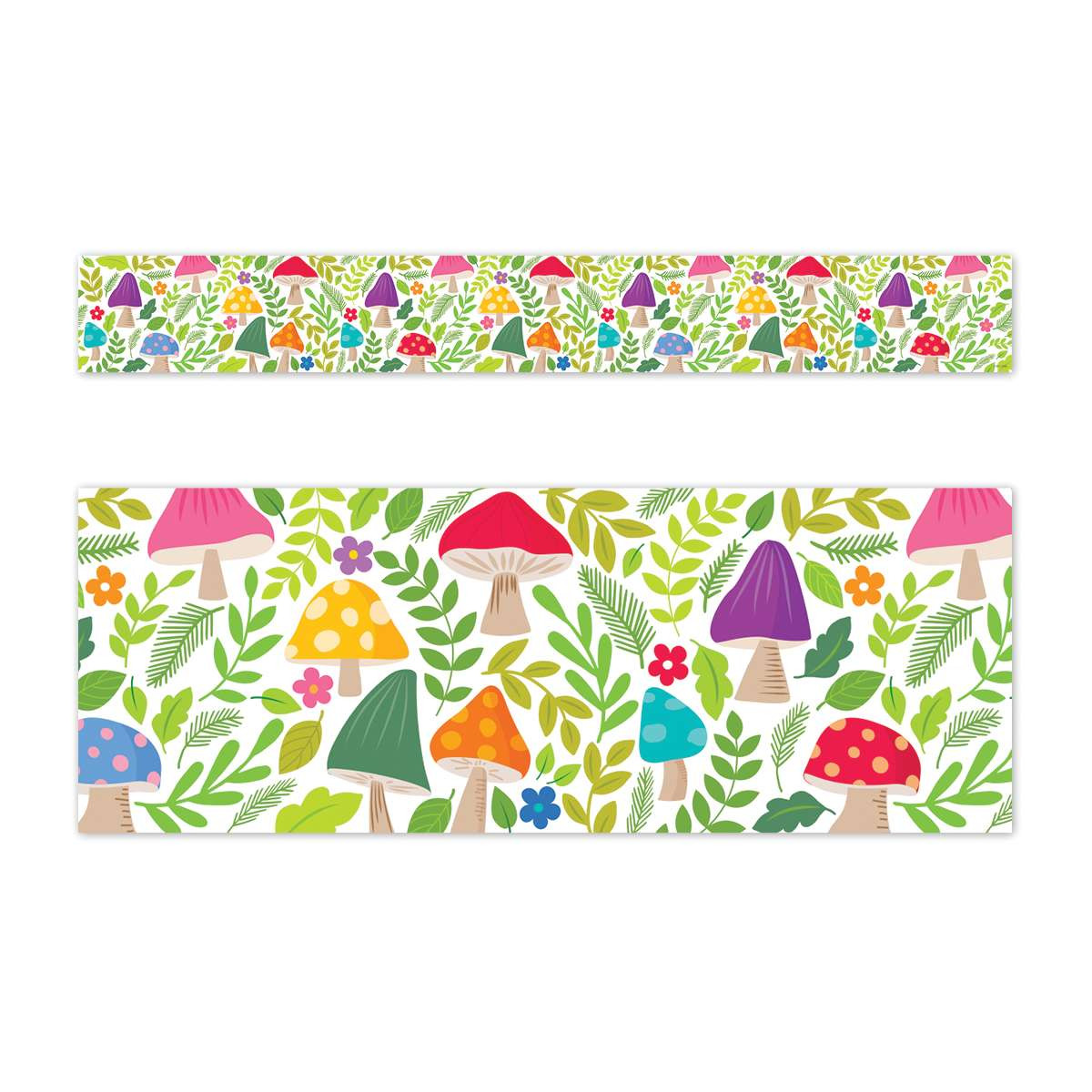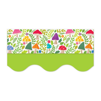 This charming Woodland Friends Mushroom Medley EZ Border features an array of colorful mushrooms on a leafy background. Perfect for use on bulletin boards in a wide variety of classroom, office, and school settings.