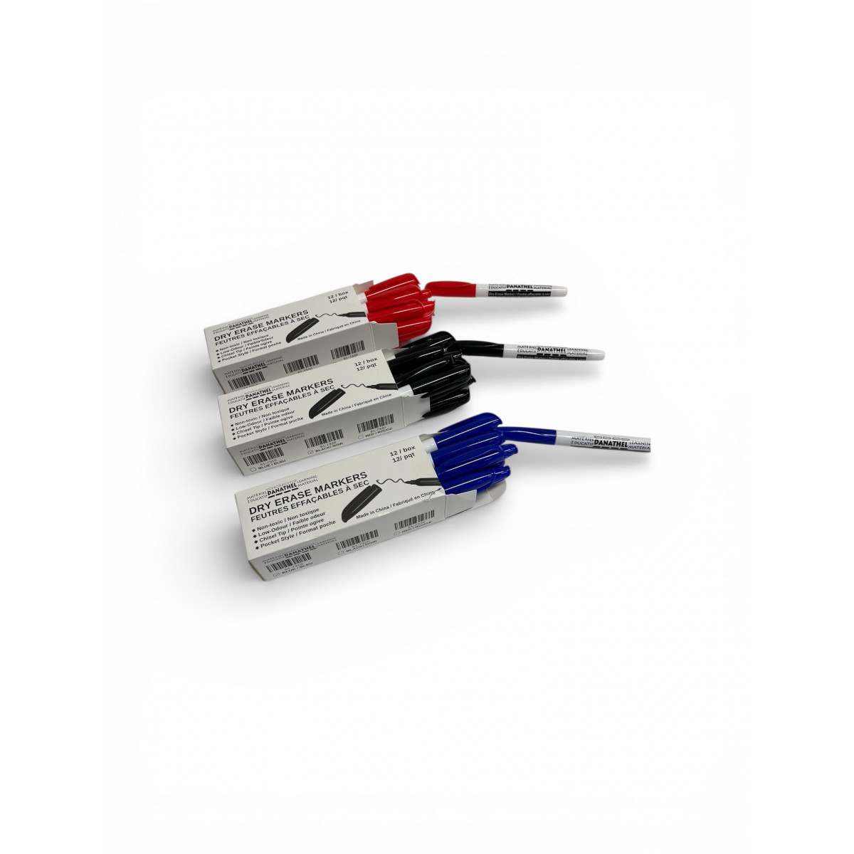 The Danathel Learning Materials Dry Erase Markers are a dependable, everyday writing solution for schools and professional environments. Featuring a pocket-style design, low-odour, non-toxic ink, and bold, easy-to-erase colour, these markers are perfect for dry erase lapboards, whiteboards, and other non-porous surfaces.