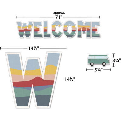 A welcome that’s impossible to overlook! Each letter is about 14-1/2" tall. The whole word spans about 7' long, or longer if the letters are spread out. Includes 38 multi-purpose blank cards and a teacher’s guide. 45 total pieces.