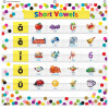This lightweight and durable Confetti pocket chart features a colorful design and hangs easily from sturdy, metal grommets. Measures 28" x 28".