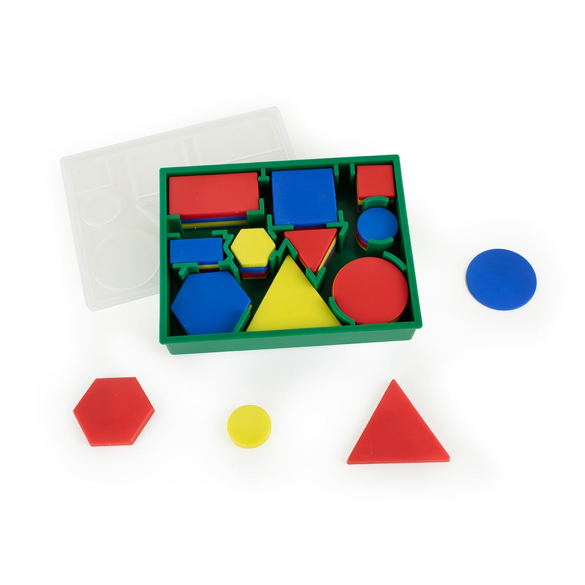 Shape up your students’ logic and mathematical thinking with this compact Attribute Blocks Student Set! This 60-piece collection includes five essential geometric shapes — circle, triangle, square, rectangle, and hexagon — in three bold primary colors (red, yellow, and blue). With two sizes and two thicknesses, students can explore multiple attributes at once, building strong foundational math skills through hands-on learning.