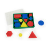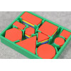 Pocket-sized 60-piece Attribute Blocks Student Set featuring 5 shapes, 3 vibrant colors, 2 sizes, and 2 thicknesses. Includes a storage tray with template base. Ideal for Grades 1+. Large square measures 1" x 1" (2.5 cm x 2.5 cm).