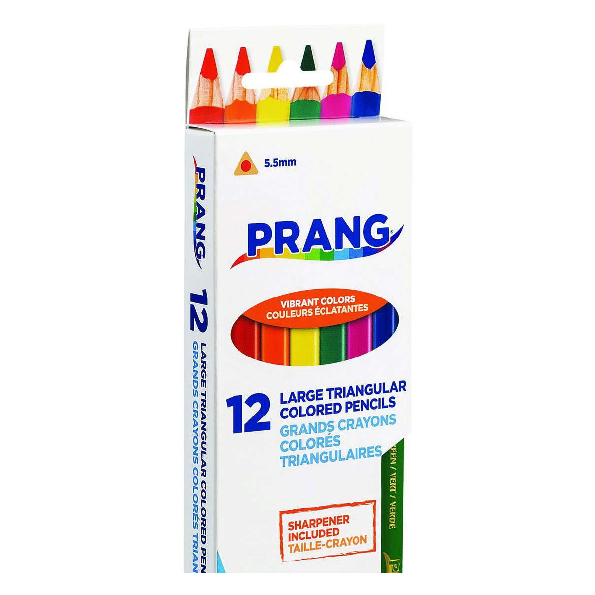 Triangular shape promotes proper, ergonomic grip and the short pencil enables better control for the youngest of artists! Smooth core delivers vivid, blendable colors and soft laydown. 5.5mm break resistant core holds up under pressure. Real wood casing ensures consistent, easy sharpening. Sharpener(s) included. Includes 12 vibrant colors: Magenta, Red, Orange, Yellow, Sky Blue, Green, Black, Brown, Violet, Blue, Gold, Silver.