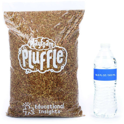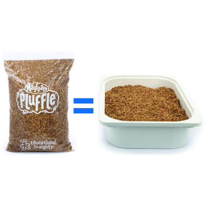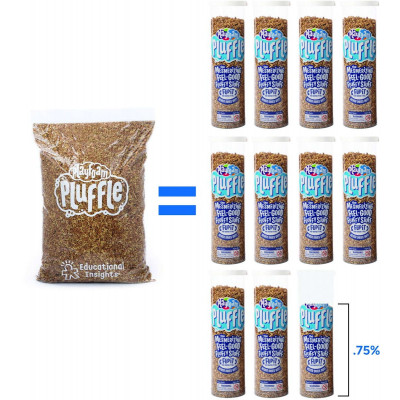 Pluffle is the perfect alternative to heavy, messy play sand. Lightweight, soft, fluffy, and mesmerizing, Pluffle is ideal for soothing sensory play. Amount included (4 lbs.) is designed to fill over ten standard sensory bins (16” x 10” x 5”). Pair with manipulatives for multisensory learning. Includes 4 resealable bags (1 lb. each) of sand-colored Pluffle. Easily ships and stores for convenience. Ages 3+.