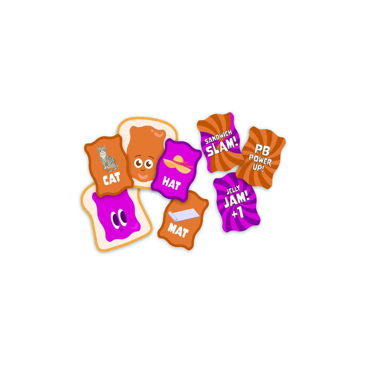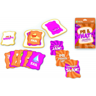 This fast-paced sandwich-stacking word game is jam-packed with language skills! Take turns stacking sandwiches with words that rhyme or start with the same letter. Get rid of all your cards to win that round’s sandwich! Kids build letter identification and rhyming skills as they play! Multiple ways to play—try a speed round for a wild word free-for-all! Fun action cards add an unpredictable twist to gameplay! 106 cards. Ages 5+.