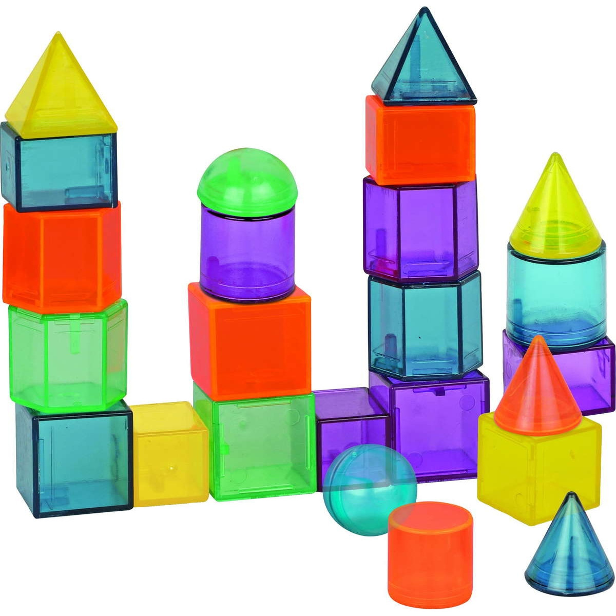 These simple shapes unlock a complex world of STEM through fun challenges! Kids learn geometry, math, engineering, and physics through hands-on, screen-free play! Features over 20 STEM challenges that grow with kids’ skills—go from simple to advanced! Includes 60 colorful, translucent geometric shapes: 10 different three-dimensional shapes in 6 unique colors! 61 pieces. Ages 5+
