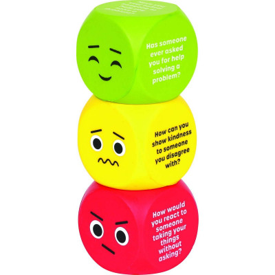 Work through disagreements while building smarter social skills with every roll! Includes 3 cube types—red for learning to recognize conflict, yellow for finding solutions, and green for celebrating social skills! Learn and grow with 30 conversation prompts and an activity guide! Fun emoji-style faces add a touch of whimsy to tough conversations! Cubes measure 1-5/8”. Total 6 cubes. Ages 5+