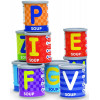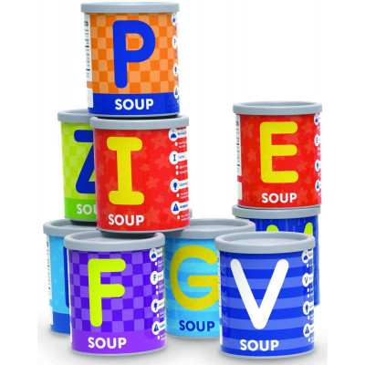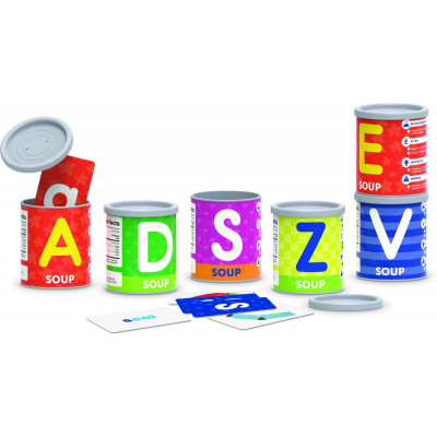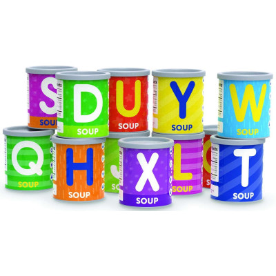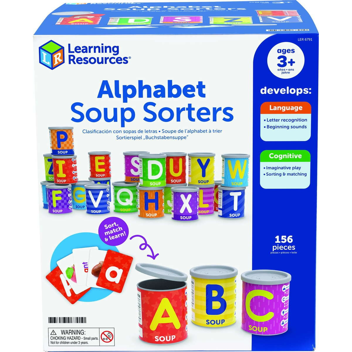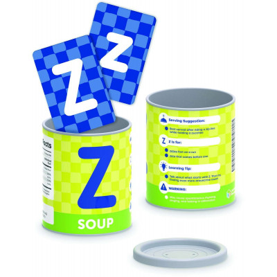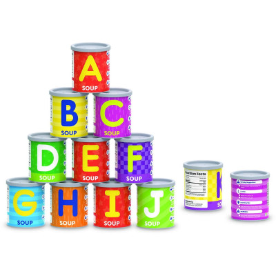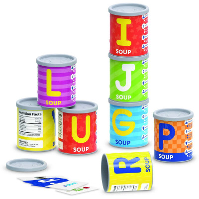 Enhance your child's alphabet skills from A to Z with these fun letter soup cans! Kids will develop letter recognition, phonics, and reading skills as they sort through photo vocabulary cards. Each letter features 5 cards: uppercase, lowercase, and 3 vocabulary images. Every uniquely designed soup can includes clever rhymes, alliteration, and more! These hands-on soup cans also help strengthen fine motor skills! 156 pieces. Ages 3+.