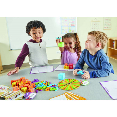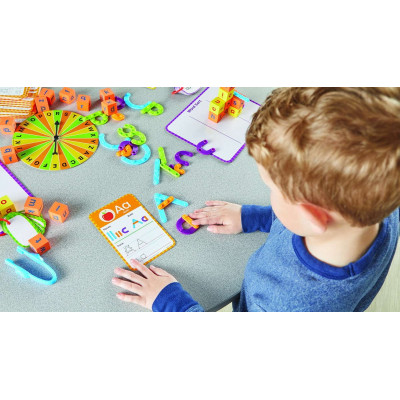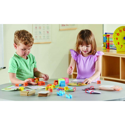 Supplement your kindergarten curriculum with this comprehensive enrichment set that’s a classroom must-have! Designed by a professional educator with small groups in mind, these school supplies add hands-on fun to classroom reading activities—learn uppercase and lowercase letters, vowel sounds, rhyming, and more! This set’s 30 double-sided activity cards each come with a main lesson, a practice activity, and an extended challenge! Includes 20-page blackline master booklet packed with take-home activities, plus storage tub!