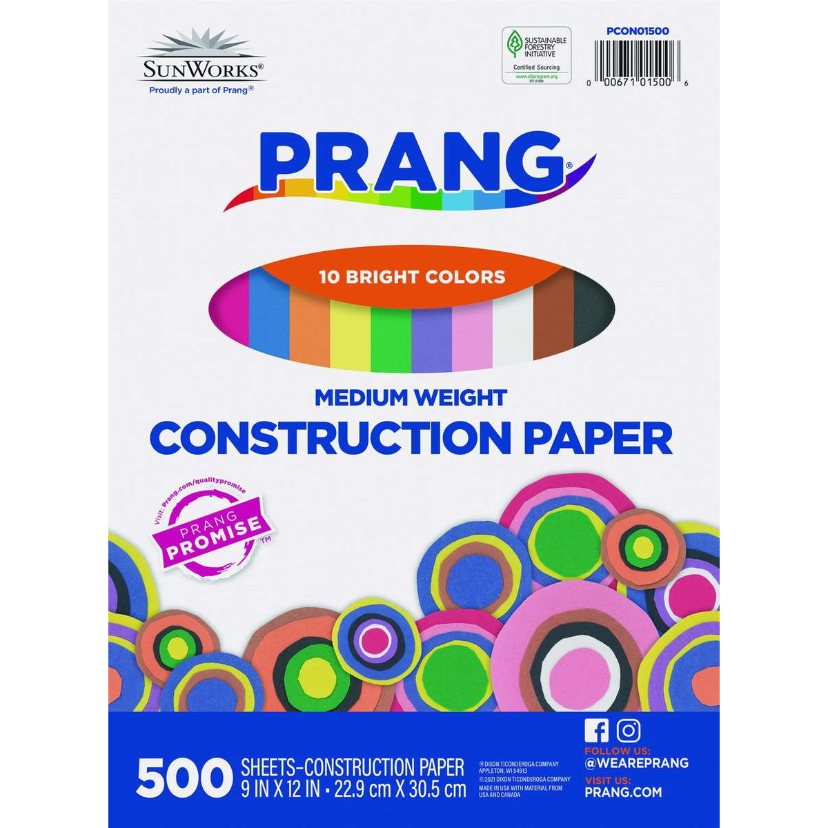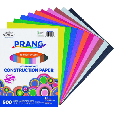 Prang® (Formerly SunWorks®) Medium Weight Groundwood Construction Paper provides the best value in school grade construction paper. It is the perfect solution for school projects and other arts and crafts. It has bright and consistent colors, is slightly textured and cuts and folds evenly without cracking. This 10 color assortment includes Scarlet, Black, Yellow-Orange, Brown, Pink, Violet, Blue, Holiday Green, White, and Yellow. Recyclable.
