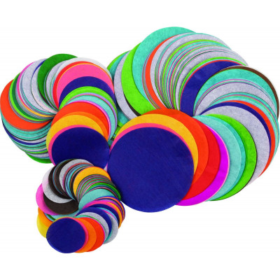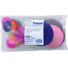 You can paint with Spectra® Deluxe Bleeding Art Tissue! Wet with a brush and wash beautiful, translucent color onto the paper. Overlap two colors and watch them blend. Or, add glue to the water to hold specific shapes in place and create magnificent, multi-layered effects. The Bleeding Tissue Circles Assortment is available in 25 assorted colors, including Cerise, National Blue, Chinese Red, Blush Pink, French Blue, Spring Green, Dark Pink, Scarlet, Magenta, Sky Blue, Leaf Green, Canary, National Red, Orchid, Azure Blue, Seal Brown, Goldenrod, Purple, Emerald Green, Black, Orange, Baby Pink, Medium Blue, Apple Green and White. This high-quality tissue can withstand cutting, crinkling and folding without tearing. The assortment includes 750 each of 3 different sizes: 1.5", 2.5" and 4.0" circles. The expansive variety of colors in this convenient pre-cut format aligns very well to the consumer’s and teacher’s desire for convenient, time-saving solutions!