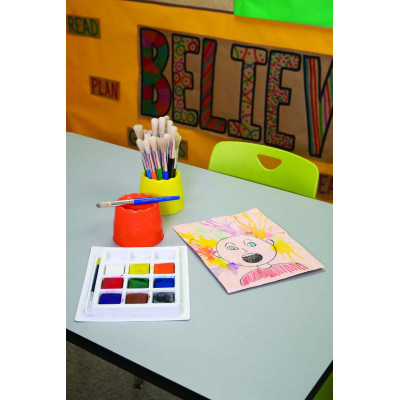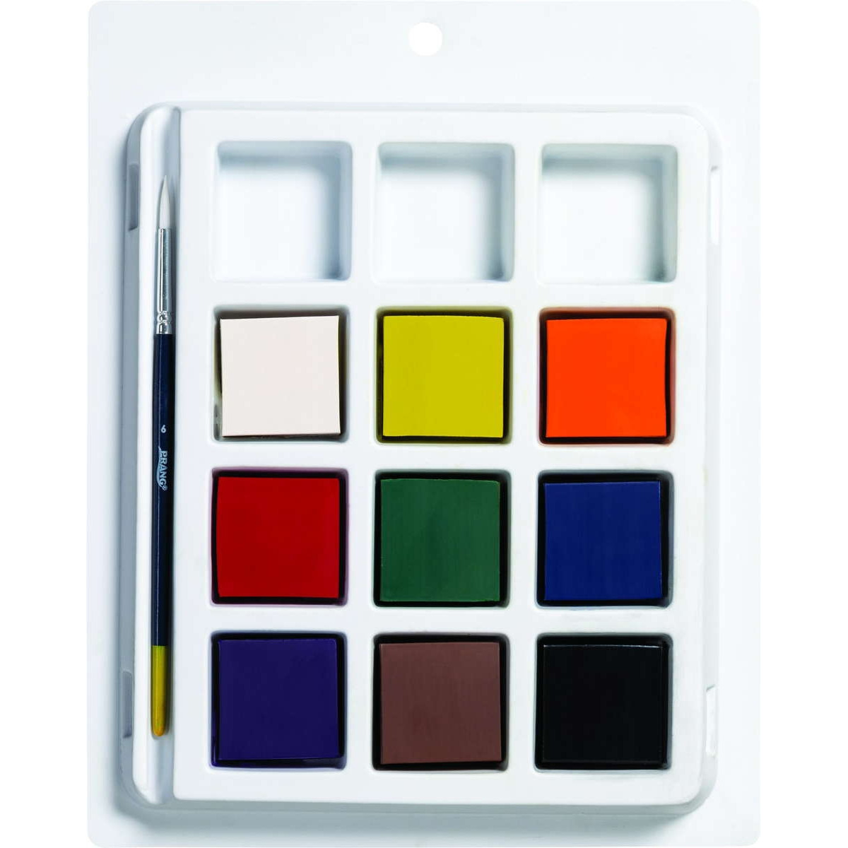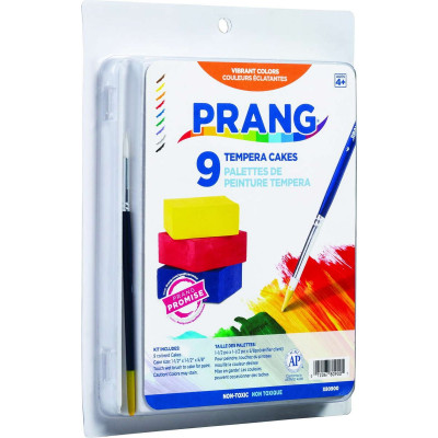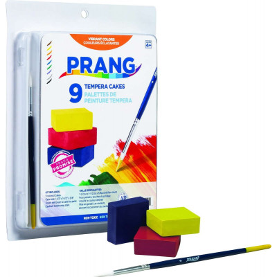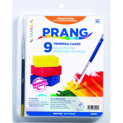 Since 1882 PRANG Art & Craft solutions maintained an uncompromised quality to ignite the passion of our valued creative customers. PRANG Tempera Cakes offer brilliant opaque colors and smooth laydown. This complete tempera kit includes water wells and a paint brush. Nine beautiful colors come in a compact easy-to-store plastic tray. These cakes are ready to use when you are. When finished, put the clear cover back on and allow cakes to dry out. Each block measures 1.5" x 1.5" x 0.625". Be bold, color your world, and discover PRANG power.