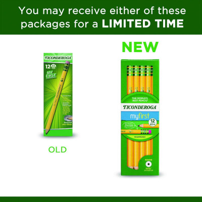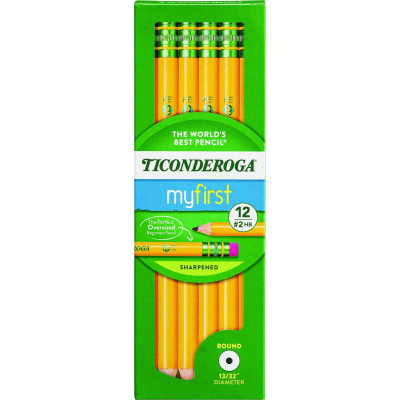 Ticonderoga® My First® Wooden Pencils, Large Barrel , No. 2 HB Soft, Pre-Sharpened, Yellow, Pack of 12 ||