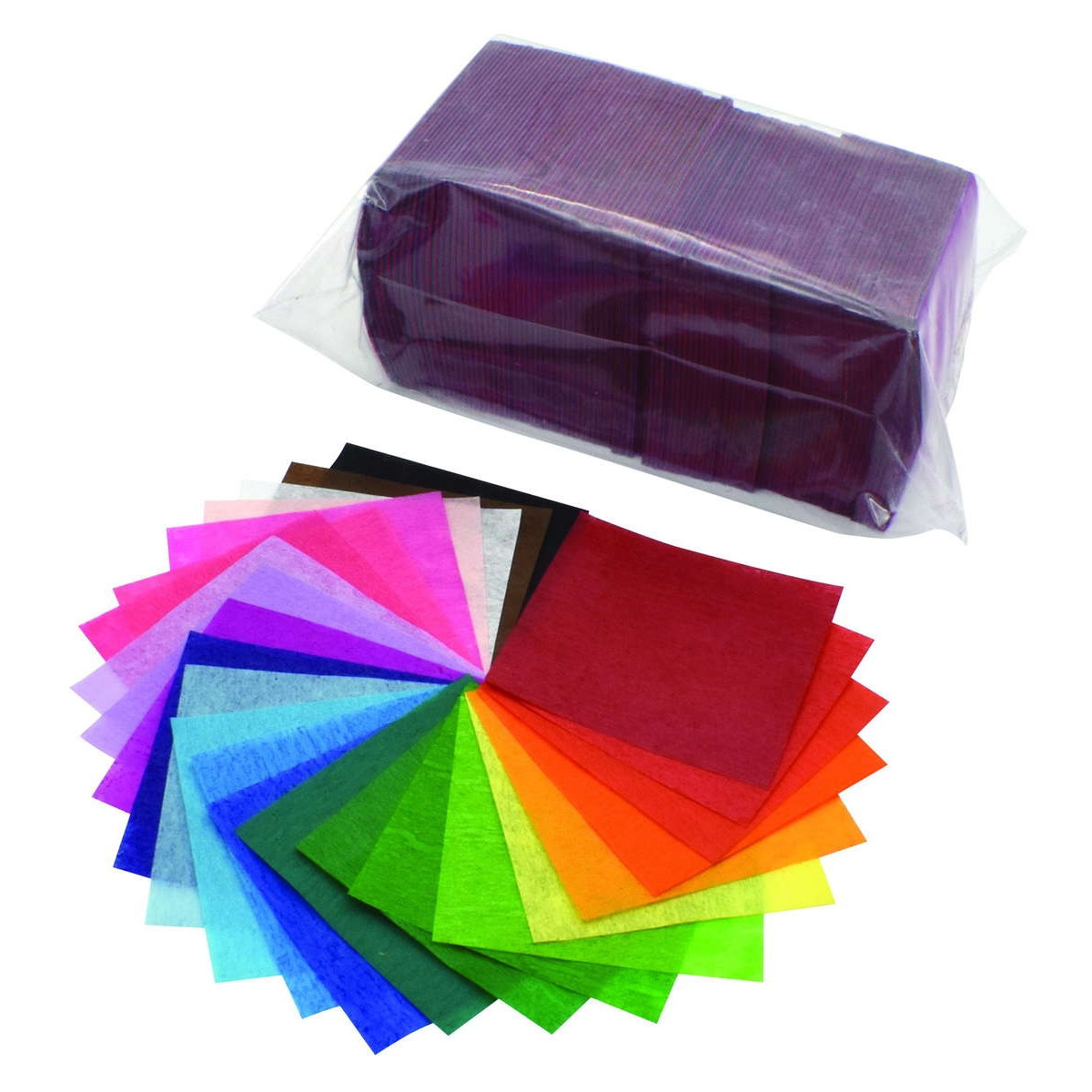 You can paint with Spectra® Deluxe Bleeding Art Tissue! Wet with a brush and wash beautiful, translucent color onto the paper. Overlap two colors and watch them blend. Or, add glue to the water to hold specific shapes in place and create magnificent, multi-layered effects. The Bleeding Tissue Squares are available in 25 assorted colors, including Cerise, National Blue, Chinese Red, Blush Pink, French Blue, Spring Green, Dark Pink, Scarlet, Magenta, Sky Blue, Leaf Green, Canary, National Red, Orchid, Azure Blue, Seal Brown, Goldenrod, Purple, Emerald Green, Black, Orange, Baby Pink, Medium Blue, Apple Green, and White. This high-quality tissue can withstand cutting, crinkling and folding without tearing. The expansive variety of colors in this convenient pre-cut format aligns very well to the consumer/crafter's and teacher's desire for convenient, time-saving solutions!
