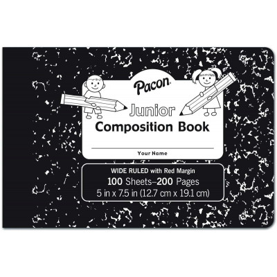 The Pacon® Junior Composition Book is a 5" x 7-1/2" composition book that is great for students to use for daily grammar and vocabulary work, practicing math word problems or as a class journal. The smaller size helps students fill the entire page for each lesson - no more wasted or empty space on full size pages! Comes with a hardcover for added durability in a Black marble design.
