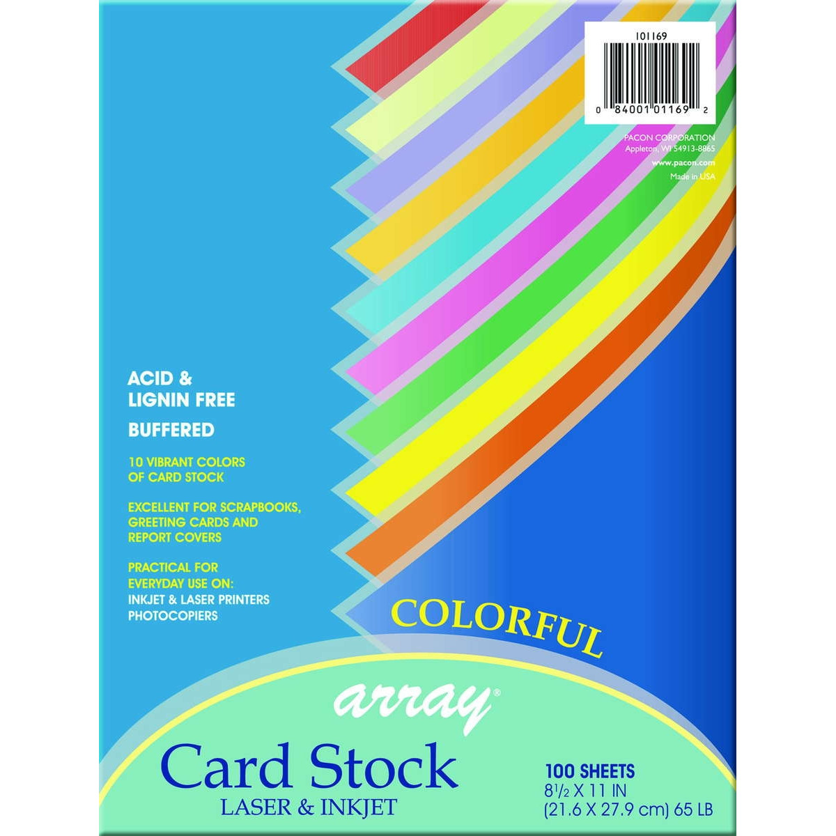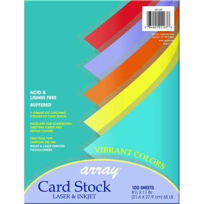 Heavyweight 65 lb. cover perfect for greeting cards, postcards, report covers, rubber stamping, memory books, flyers, announcements, and more. Lignin free, buffered. Acid-free. 81⁄2" x 11", 100 sheets per pack. Violet, Pumpkin, Hyper® Yellow, Rojo Red, Hyper® Lime, Hyper® Pink, Cobalt Blue, Marine Blue, Emerald Green, Gold.