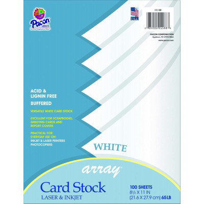 Heavyweight 65 lb. cover perfect for greeting cards, postcards, report covers, rubber stamping, memory books, flyers, announcements, and more. Lignin free, buffered. Acid-free. 81⁄2" x 11", 100 sheets per pack.