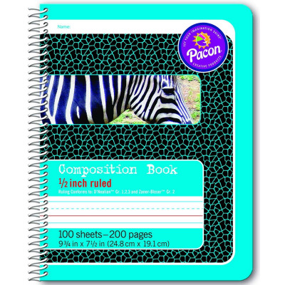 Encourage creative writing and handwriting practice with these composition books and journals! Inside front cover is printed with the alphabet for student reference. Primary Journals include a 4 1⁄8" picture story space at the top. Rulings conform to D’Nealian™ and Zaner-Bloser™ handwriting styles. Each book contains 100 sheets or 200 pages. 9 3⁄4" x 7 1⁄2".