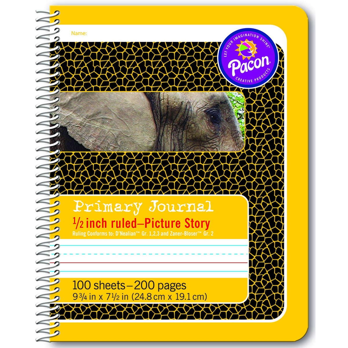 Encourage creative writing and handwriting practice with these composition books and journals! Inside front cover is printed with the alphabet for student reference. Primary Journals include a 4 1⁄8" picture story space at the top. Rulings conform to D’Nealian™ and Zaner-Bloser™ handwriting styles. Each book contains 100 sheets or 200 pages. 9 3⁄4" x 7 1⁄2".