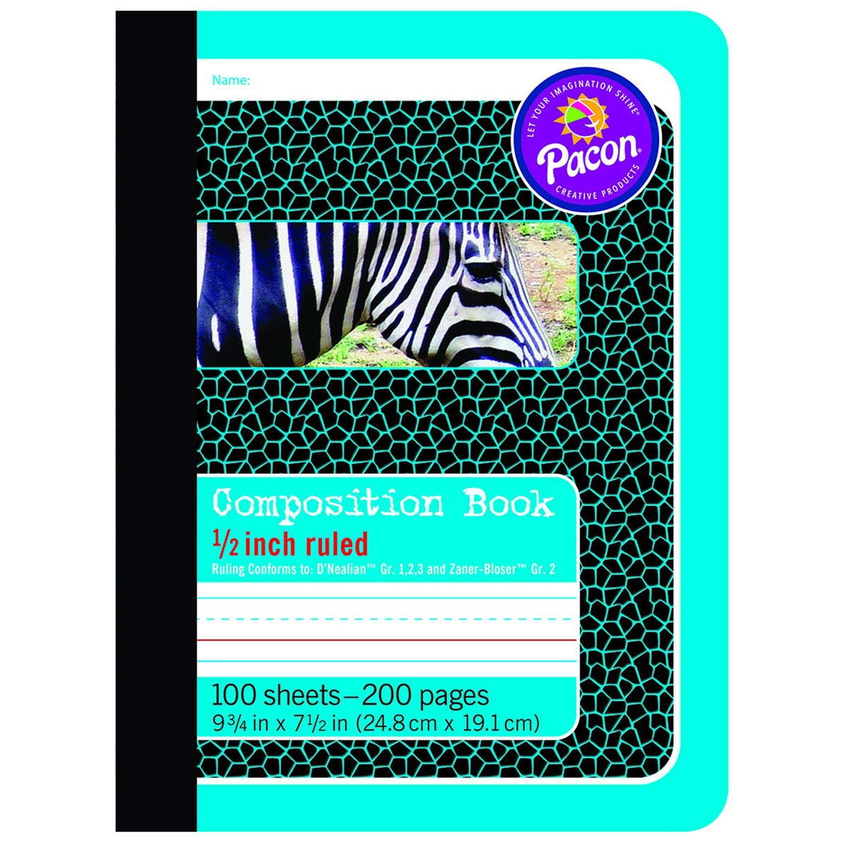 These books help track students’ handwriting progress. Colorful distinctive covers make it easy to find the grade level and ruling you are looking for. Inside front cover is printed with the alphabet. Rulings conform to D’Nealian™ and Zaner-Bloser™ handwriting styles. Each book contains 100 sheets or 200 pages. 9 3⁄4" x 7 1⁄2".