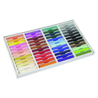 Richer in pigment and smoother in texture, these pastels will delight the aspiring artist with their soft, smooth velvet effect. Non-toxic. Sticks are 2-1⁄2" x 3⁄8". Each box contains a plastic holding tray to separate each pastel. Conforms to ASTM D-4236. Colors include: White, Lemon Yellow, Peach, Dark Orange, Red, Dark Green, Yellow Green, Turquoise, Blue, Violet, Burnt Umber, Black, Gold Ochre, Yellow Orange, Red Orange, Terra Cotta, Earth, Blue Green, Red Violet, Magenta, Light Blue, Dark, Blue, Navy and Gray.