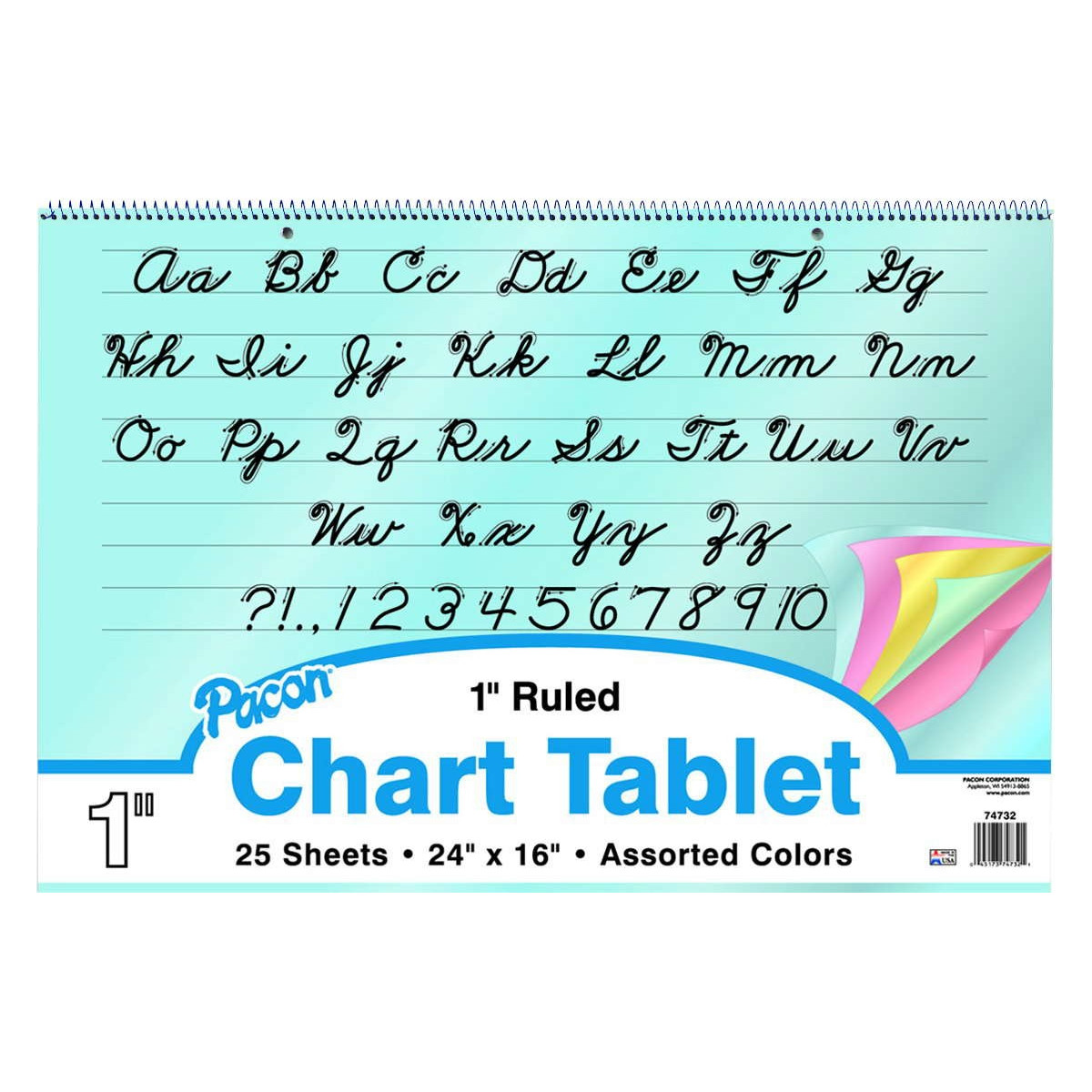 Colored Paper Chart Tablet, 24" x 16", 1" ruled ||