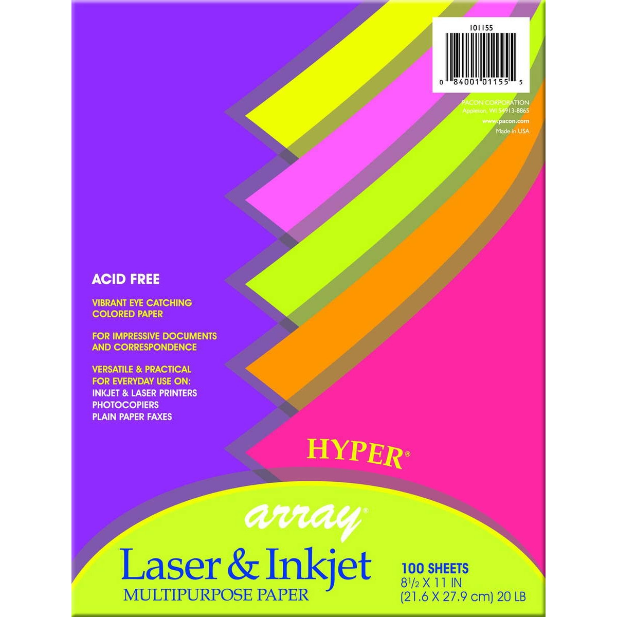 High-impact colors make your messages bright. For flyers, reports, personalized stationery, announcements, newsletters and memos. Made from sulphite bond, perfect for high speed copiers, laser and ink jet printers. Acid-free. 8 1⁄2" x 11". Yellow, Pink, Orange, Coral Red, Lime.