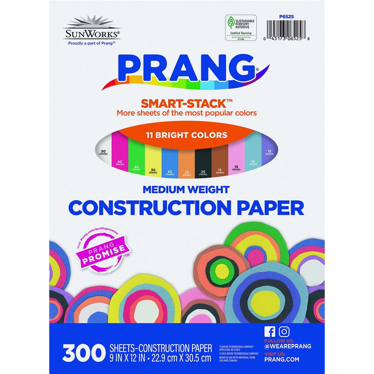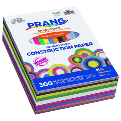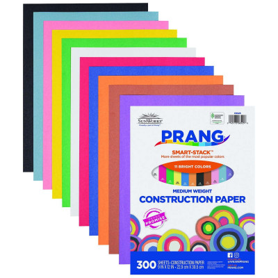 Prang® (Formerly SunWorks®) Medium Weight Groundwood Construction Paper provides the best value in school grade construction paper. It is the perfect solution for school projects and other arts and crafts. It has bright and consistent colors, is slightly textured and cuts and folds evenly without cracking. This 11 color mega count pack contains extra sheets of the most frequently used colors. Assortments contain: Scarlet, Black, Yellow-Orange, Dark Brown, Pink, Violet, Blue, Sky Blue, Holiday Green, White, and Yellow. Recyclable.