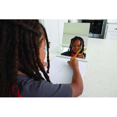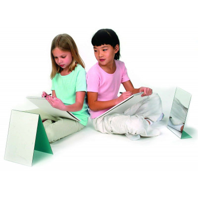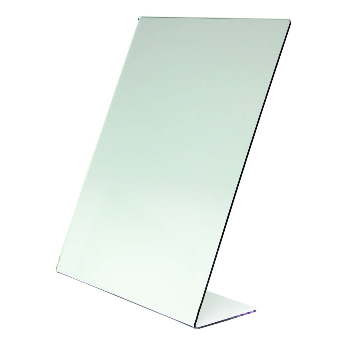 Durable, scratch-resistant mirrors are 2 mm thick. 8 1⁄2" x 11" with 3" base.