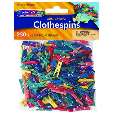 Classic spring clothespins. 1"L. 250 pieces.