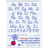 2" ruled on both sides with solid blue headlines, dotted blue midlines and solid red baselines. The outside cover shows alphabet/numerals with directional arrows for classroom demonstration. The inside cover shows the alphabet/numerals for modeling when writing in the tablet. Spiral bound white sulphite bond paper. 2-hole punched. Ruled the short way. 24" x 32". 25 sheets.
